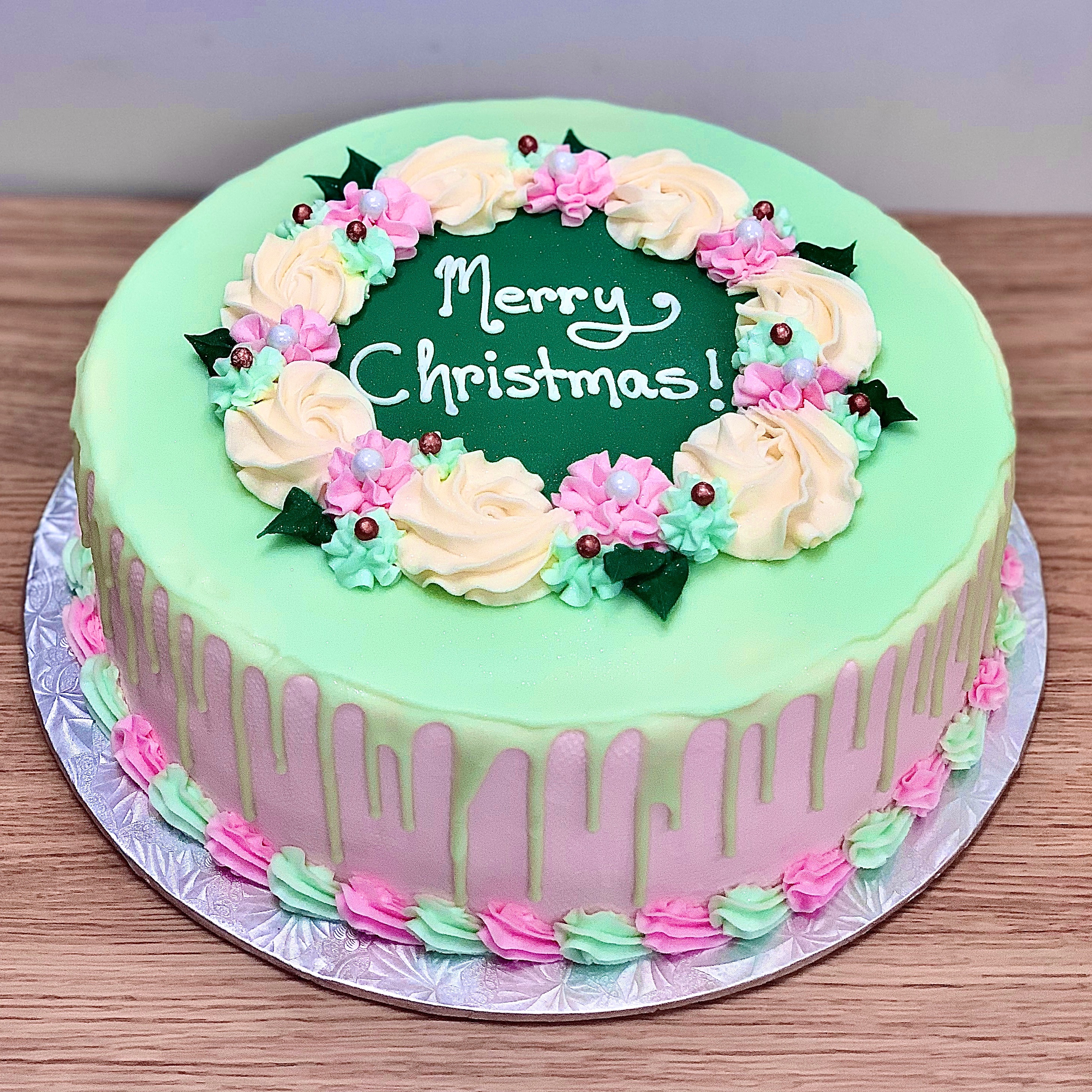 Christmas tree on round cake